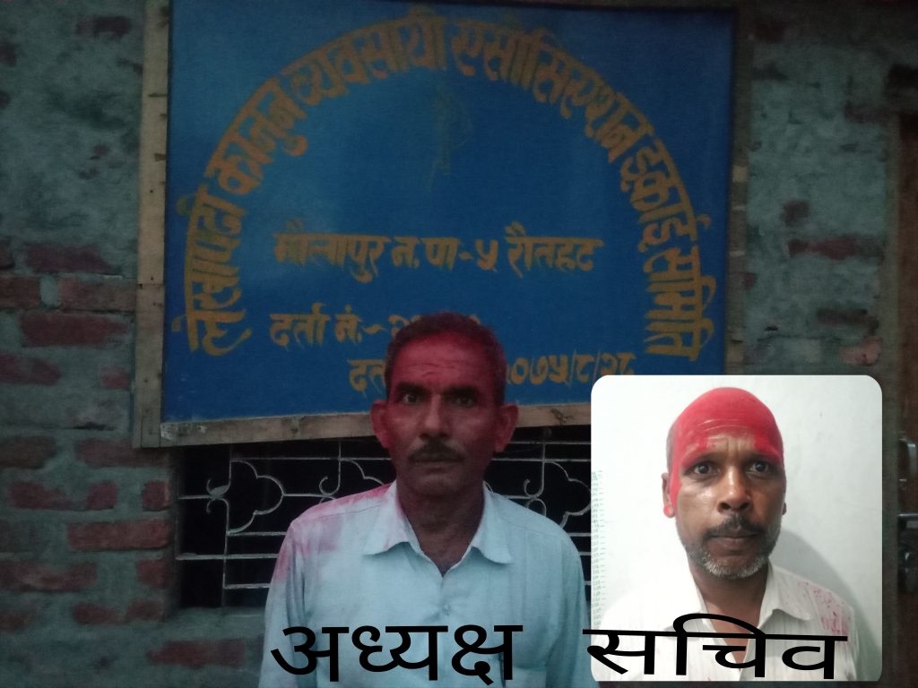 अध्यक्षमा श्री बालदेव राय यादव उपाध्यक्षमा लखिन्द्र प्रसाद कुशवाहा, कोषाध्यक्षमा रामाआदेश राय यादव, सचिवमा जय चन्द्र साह तेली, सह–सचिवमा रन्जित साह, र सह–कोषाध्यक्षमा मुकेश प्रसाद श्रीवास्तव सदस्यहरुमा राजेश राय यादव, अवध नारायण राम, सुखल पण्डित, श्याम सुन्दर प्रसाद शाह, र दिलीप कुमार जयसवाल रहेका छन्।