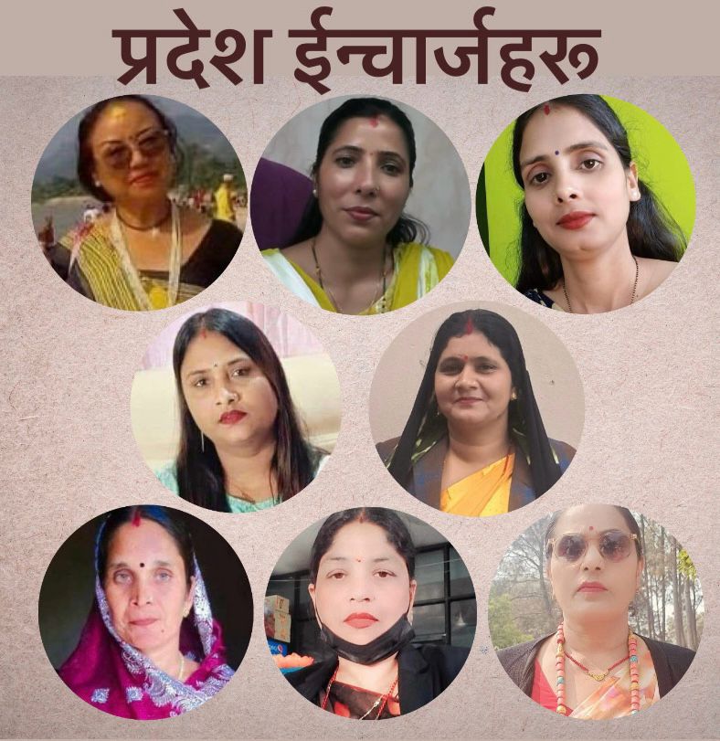 यसैगरी गण्डकी प्रदेशमा सीता सुवेदी इन्चार्ज र ज्योति शेर्पा अध्यक्ष, लुम्बिनी प्रदेशमा विद्या शर्मा इन्चार्ज र विमला विक अध्यक्ष, कर्णाली प्रदेशमा सिमा जयसवाल इन्चार्ज र हरिकला देवकोटा अध्यक्ष, सुदुरपश्चिम प्रदेशमा फुलबदनदेवी पटेल इन्चार्ज र आशा सञ्जेललाई अध्यक्षको जिम्मेवारी दिइएको छ । महिला मोर्चाको बसेको बैठकले राज्यको हरेक तह र निकायमा महिलाको ५१ प्रतिशत सहभागिता, कमिटी बिस्तार, पुनर्गठन सहित महिलाको हकअधिकार एवं महिलामाथि हुने विभेदका बिरुद्धमा संघर्षका बिभिन्न कार्यक्रम अगाडी बढाउँने निर्णय समेत गरेको छ ।
