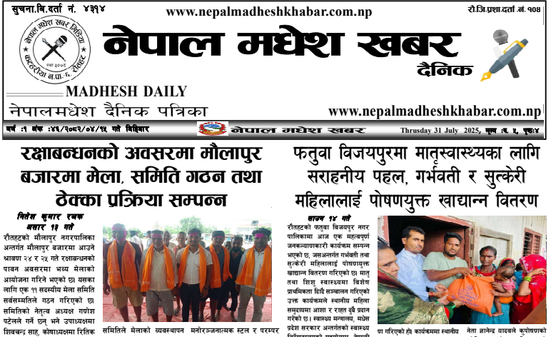 २०८२ श्रावण १५ गते प्रकाशित नेपालमधेश खबर दैनिक पत्रिका पढनुहोस्।