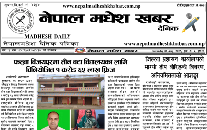 २०८२ श्रावण १७ गते प्रकाशित नेपालमधेश खबर दैनिक पत्रिका पढनुहोस्।https://drive.google.com/file/d/12uLSCxuuon2G1MuyfatLtTxSpd-GEc-k/view?usp=sharing