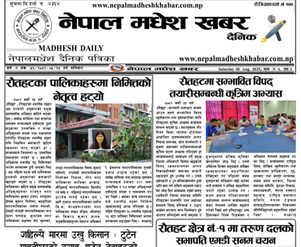 २०८२ भादौँ १४ गते प्रकाशित नेपालमधेश खबर दैनिक पत्रिका पढनुहोस्।