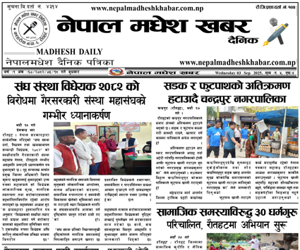 २०८२ भादौँ १८ गते प्रकाशित नेपालमधेश खबर दैनिक पत्रिका पढनुहोस्।