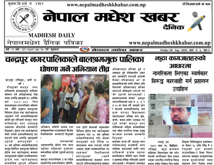 २०८२ भादौँ २० गते प्रकाशित नेपालमधेश खबर दैनिक पत्रिका पढनुहोस्।