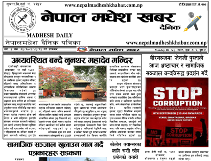 २०८२ भादौँ २३ गते प्रकाशित नेपालमधेश खबर दैनिक पत्रिका पढनुहोस्।