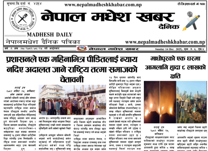 २८ मंसिर २०८२, सोमवार, प्रकाशित नेपालमधेश खबर दैनिक पत्रिका पढनुहोस्।