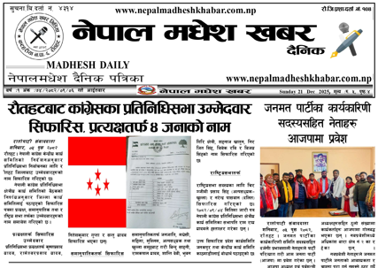 ०६ पुस २०८२,आईतवार, प्रकाशित नेपालमधेश खबर दैनिक पत्रिका पढनुहोस्।