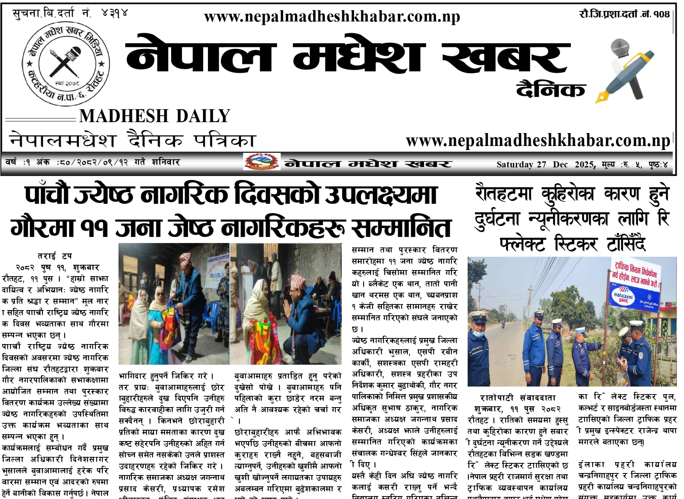 १२ पुस २०८२,शनिवार, प्रकाशित नेपालमधेश खबर दैनिक पत्रिका पढनुहोस्।