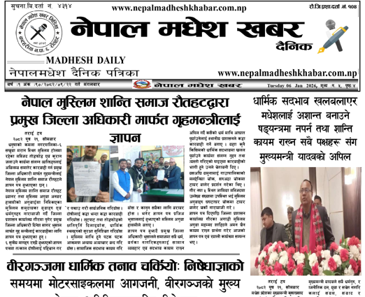 २२ पुस २०८२,मंगलवार, प्रकाशित नेपालमधेश खबर दैनिक पत्रिका पढनुहोस्।