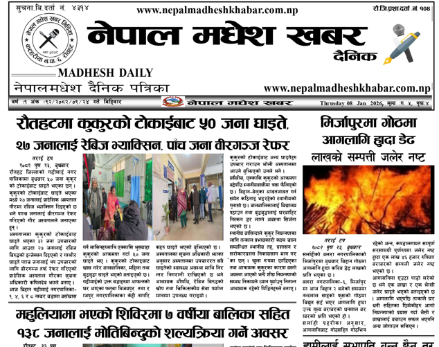 २४ पुस २०८२,बिहिवार, प्रकाशित नेपालमधेश खबर दैनिक पत्रिका पढनुहोस्।