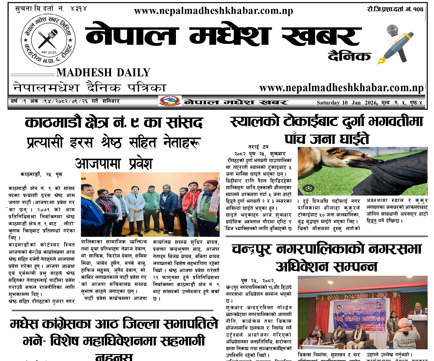 २६ पुस २०८२,शनिवार, प्रकाशित नेपालमधेश खबर दैनिक पत्रिका पढनुहोस्।