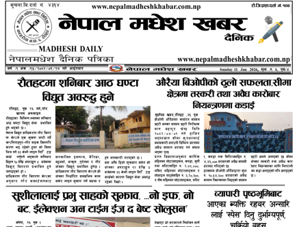 २७ पुस २०८२,आईतवार, प्रकाशित नेपालमधेश खबर दैनिक पत्रिका पढनुहोस्।