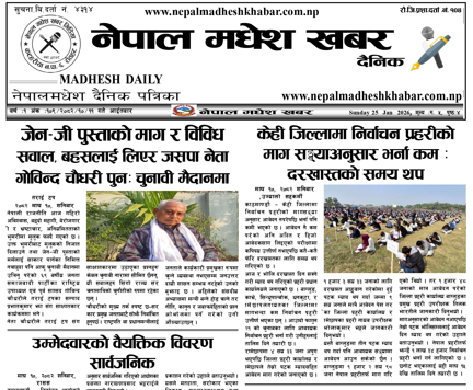 ११ माघ २०८२,आईतवार, प्रकाशित नेपालमधेश खबर दैनिक पत्रिका पढनुहोस्।