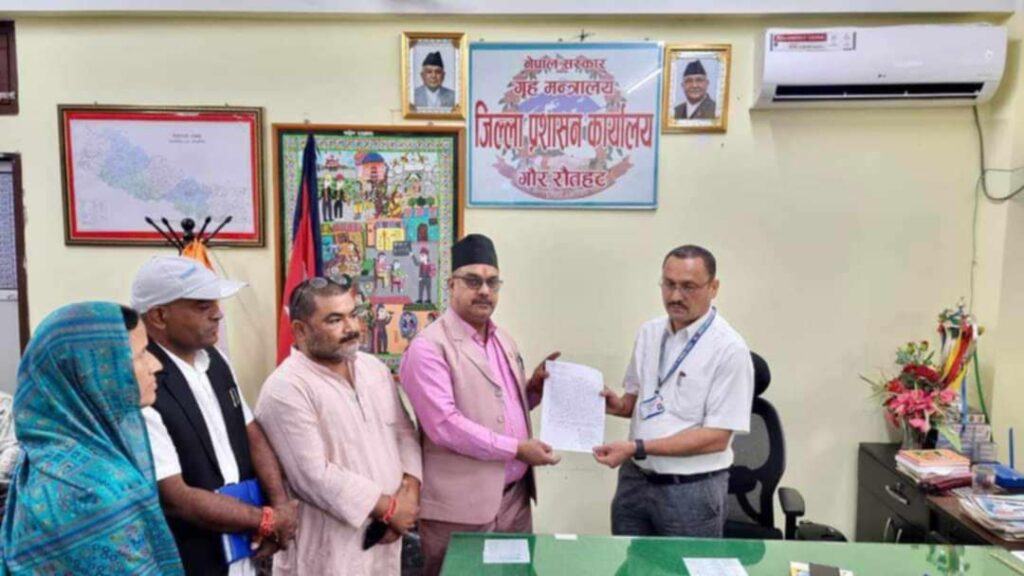 गौर नगरपालिकाका नगर प्रमुख शम्भु साह, माधवनारायण नगरपालिकाका नगर प्रमुख बैजनाथ प्रसाद यादव, इशनाथ नगरपालिकाका नगर प्रमुख कौशल्या देवी, बौधीमाई नगरपालिकाका नगर प्रमुख प्रदीप यादव र यमुनामाई गाउँपालिकाका अध्यक्ष महम्मद सउदले संयुक्त रुपमा जिल्ला प्रशासन कार्यालय रौतहटमा उपस्थित भई प्रमुख जिल्ला अधिकारी रेग्मी मार्फत प्रधानमन्त्री केपी शर्मा ओलीलाई ज्ञापनपत्र बुझाएका हुन् ।