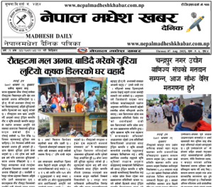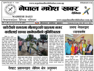 २०८२ श्रावण २१ गते प्रकाशित नेपालमधेश खबर दैनिक पत्रिका पढनुहोस्।https://drive.google.com/file/d/11uiW3MyLzMNGj-bFKhdouZ-h9XLBZk8D/view?usp=sharing